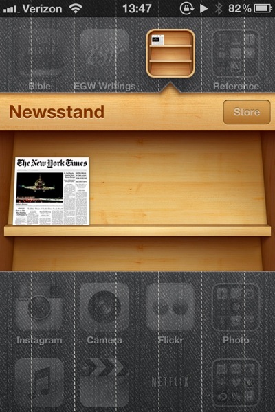 The first news apps are starting to show up in Newsstand and on my iPhone, the first one to show up was the NYTimes app. So far it looks nice. I am looking forward to actual updates coming through.