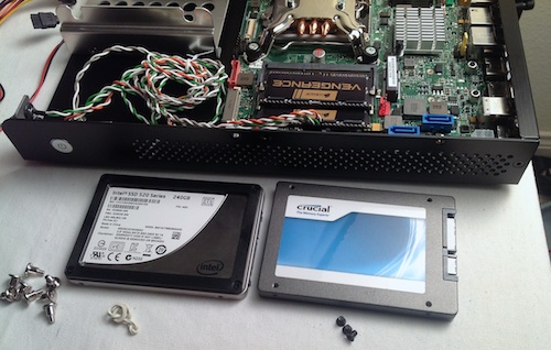 A future addition to this system will likely be an mSATA SSD such as one of the Crucial M4 mSATA SSDs. That would allow the two drive bays to be utilized for up to 1TB laptop drives such as the 1TB HGST Travelstar 5400RPM 2.5-inch hard drive. Two 1TB drives in a RAID 0 might make a good media store.